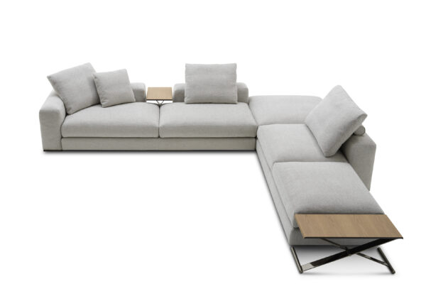 Ananta u novom ruhu, pored različitih konfiguracija, dozvoljava novu kompozicionu mogućnost: dvostranu kombinaciju elemenata. Ovakvim dizajnom, ona koncipira fluidnost prostora, što je apsolutno u skladu sa savremenim stanovanjem. Postoji mogućnost integracije stočića za kafu izrađenog od punog drveta sa metalnim postoljem, pa će tako Vaša Ananta biti još jedinstvenija i upečatljivija.